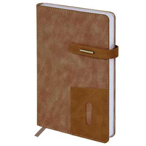 Ежедневник недатированный А5 138х213 мм BRAUBERG "Cowboy", под кожу, застежка 160 л., коричневый, 116198