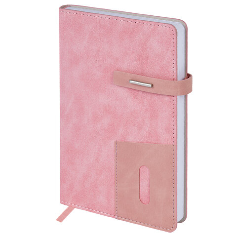 Ежедневник недатированный А5 138х213 мм BRAUBERG "Cowboy", под кожу, застежка 160 л., розовый, 116199