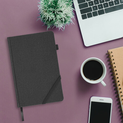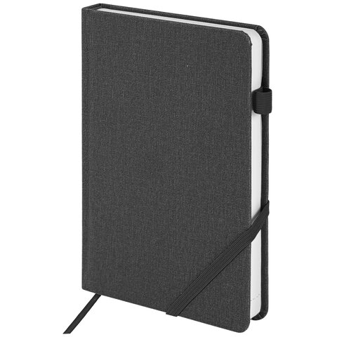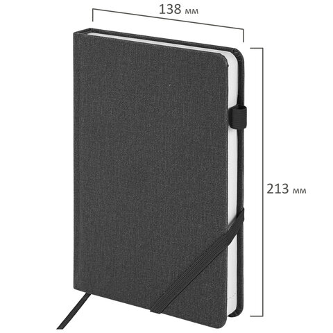 Ежедневник недатированный А5 138x213 мм BRAUBERG "Finest" под кожу, резинка, 136 л., черный, 111869