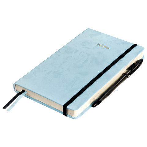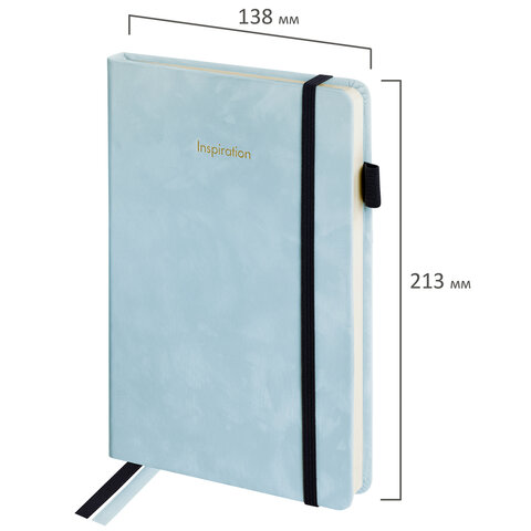 Ежедневник недатированный А5 138x213 мм, BRAUBERG "Velvet", резинка, держатель, 160 л., серо-голубой, 116245