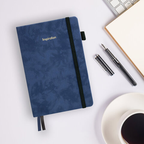 Ежедневник недатированный А5 138x213 мм, BRAUBERG "Velvet", резинка, держатель, 160 л., синий, 116243