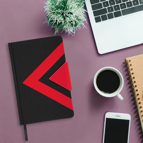 Ежедневник недатированный А5 138x213 мм BRAUBERG "Waves" под кожу, застежка 160 л., черный/красный, 111876