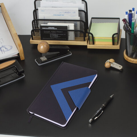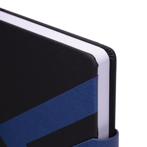 Ежедневник недатированный А5 138x213 мм BRAUBERG "Waves" под кожу, застежка, 160 л., черный/синий, 114453