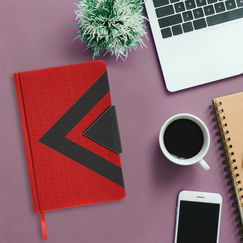 Ежедневник недатированный А5 138x213 мм BRAUBERG "Waves" под кожу, застежка 160 л., красный/черный, 111874
