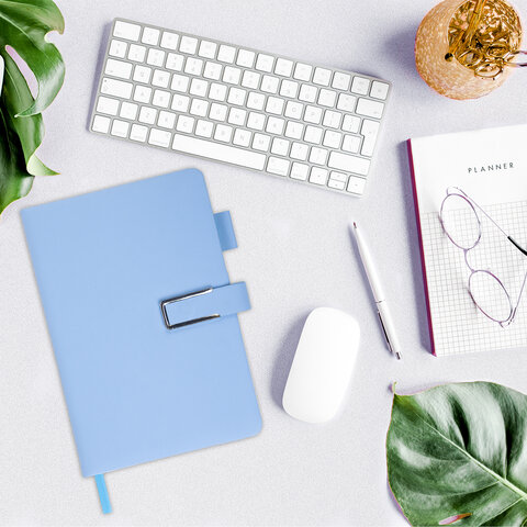 Ежедневник недатированный, А5, 143х210 мм, BRAUBERG "Dainty", под кожу, магнитная застежка, 160 л., голубой, 117144