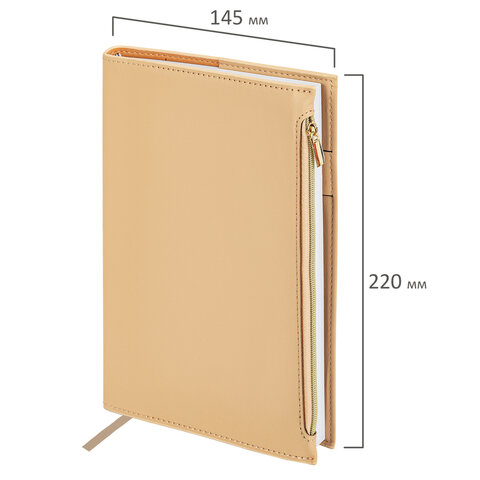Ежедневник недатированный А5 145х220 мм, BRAUBERG "Zipline" под кожу, карман-молния, 160 л., бежевый, 116250