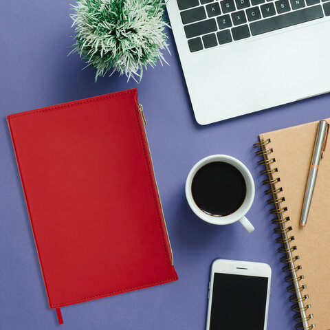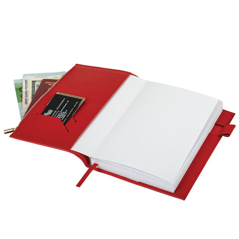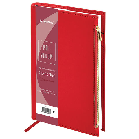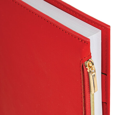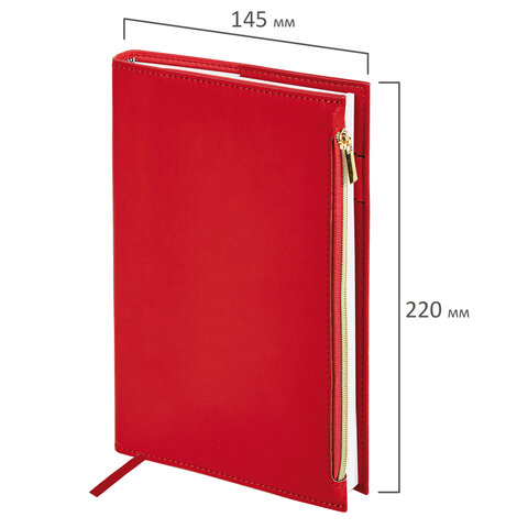 Ежедневник недатированный А5 145х220 мм, BRAUBERG "Zipline" под кожу, карман-молния, 160 л., красный, 116248