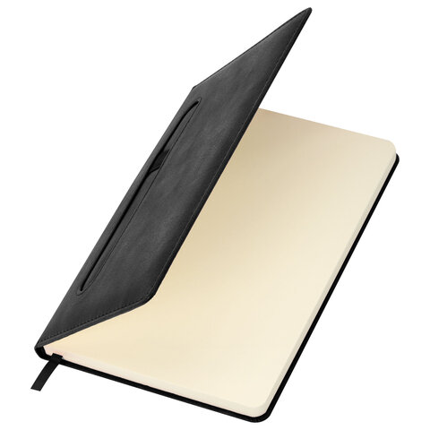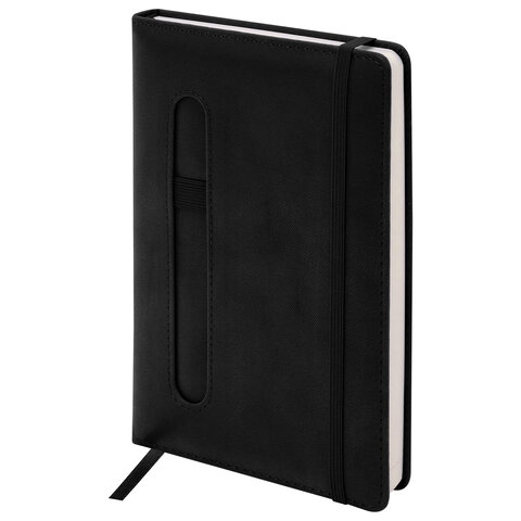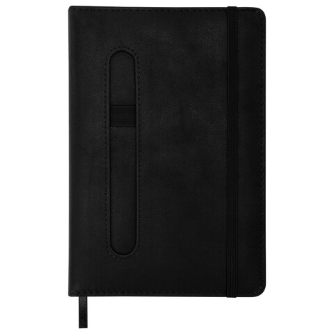 Ежедневник недатированный А5 148x218 мм BRAUBERG "Optimal", под кожу, 160 листов, резинка, держатель для ручки, черный, 118640
