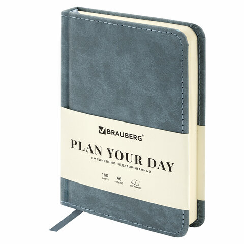 Ежедневник недатированный МАЛЫЙ 100х150 мм А6 BRAUBERG "Status", под кожу, 160 л., серо-голубой, 113369