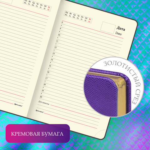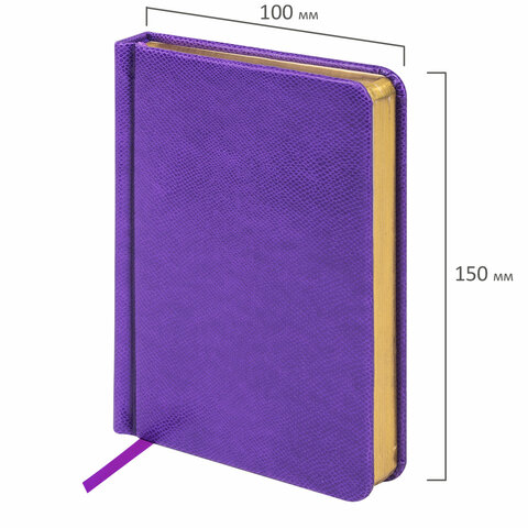 Ежедневник недатированный МАЛЫЙ ФОРМАТ 100x150 мм, А6, BRAUBERG "Iguana", под кожу,160 л., сиреневый, 114470