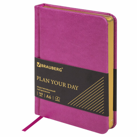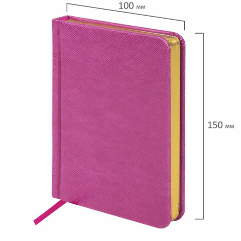 Ежедневник недатированный МАЛЫЙ ФОРМАТ 100x150 мм, А6, BRAUBERG Iguana под кожу, 160 л., розовый, 114469
