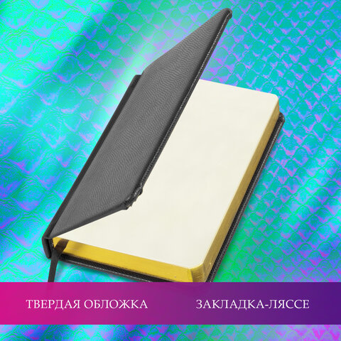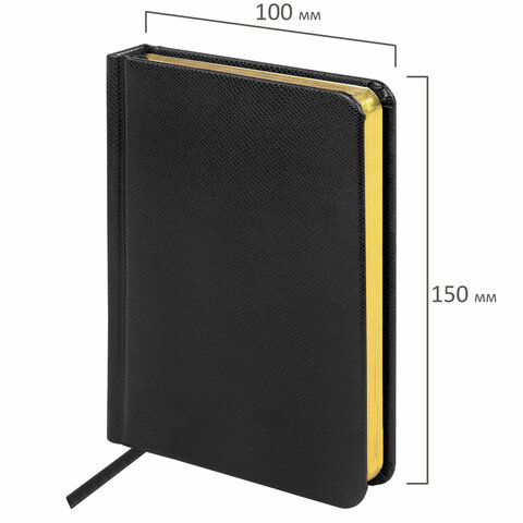 Ежедневник недатированный МАЛЫЙ ФОРМАТ А6, 100х150 мм, BRAUBERG "Iguana", кожзам, 160 л., черный, 125104
