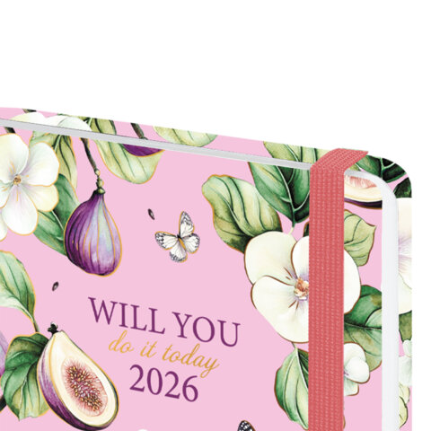 Датированный ежедневник с резинкой BRAUBERG "Инжир" подходит тем, кто предпочитает продуманное планирование спонтанным решениям.