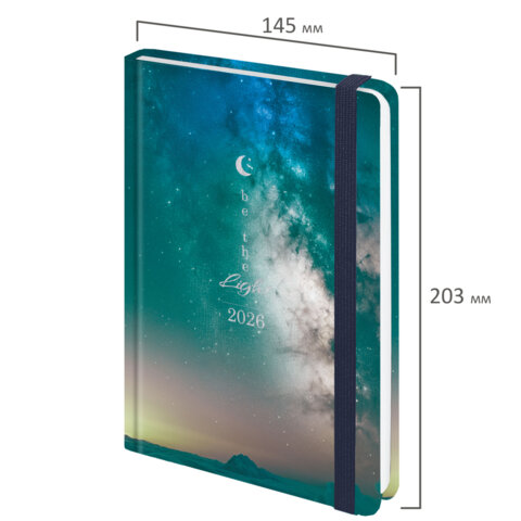 Ежедневник датированный 2026 с резинкой 145х203 мм, А5, BRAUBERG твердый, фольга, "Млечный путь", 117345