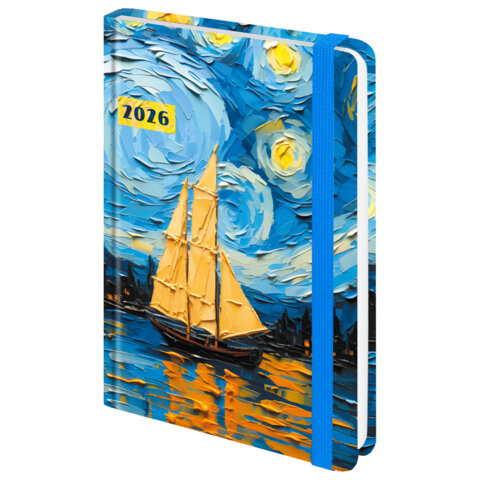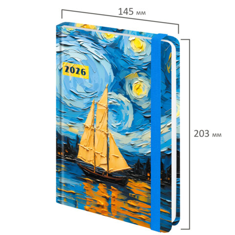 Ежедневник датированный 2026 с резинкой 145х203 мм, А5, BRAUBERG, твердый, "Живопись", 117342