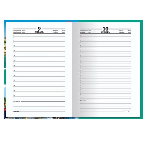 Универсальный ежедневник, который позволяет вести записи в любом году из четырех, указанных на страницах внутреннего блока.