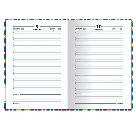 Универсальный ежедневник, который позволяет вести записи в любом году из четырех, указанных на страницах внутреннего блока.