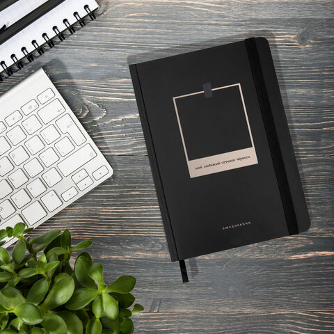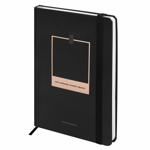 Ежедневник недатированный с резинкой А5 145х203 мм, BRAUBERG, твердый, 128 л., "Black", 116288