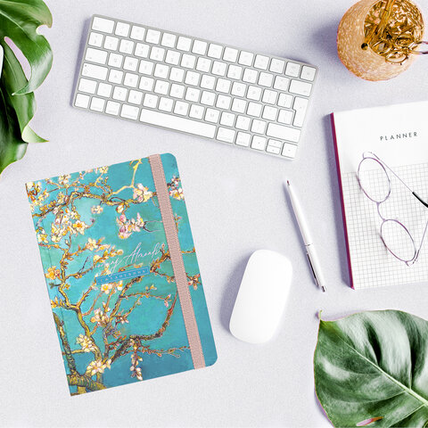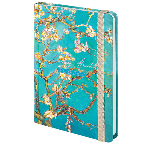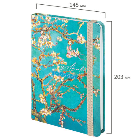 Ежедневник недатированный с резинкой А5 (145х203 мм), BRAUBERG, твердый, фольга, 128 л., "Almond", 114568