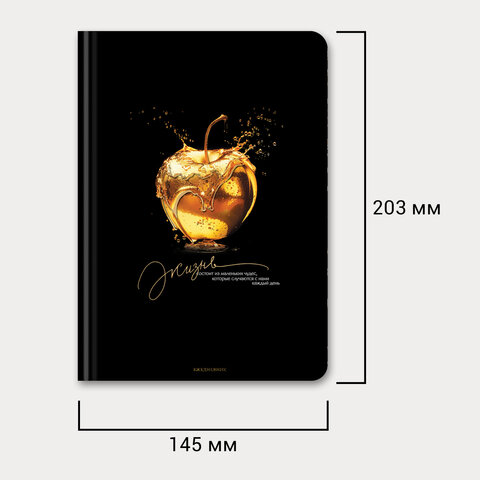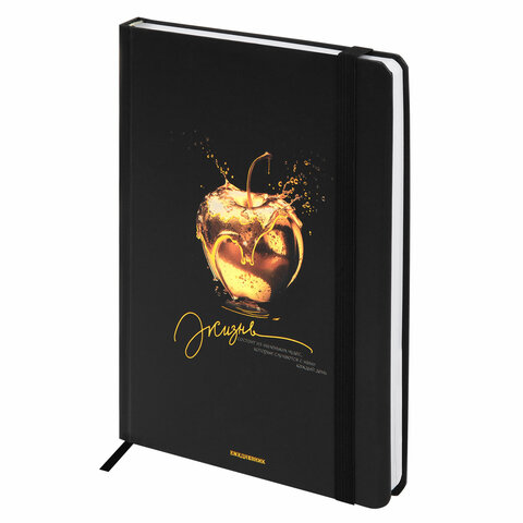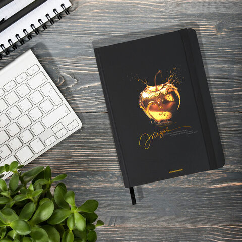 Ежедневник недатированный с резинкой А5 145х203 мм, BRAUBERG, твердый, фольга, 128 л., "Apple", 116294