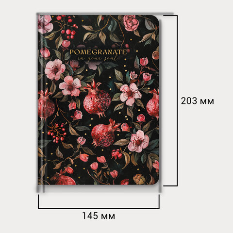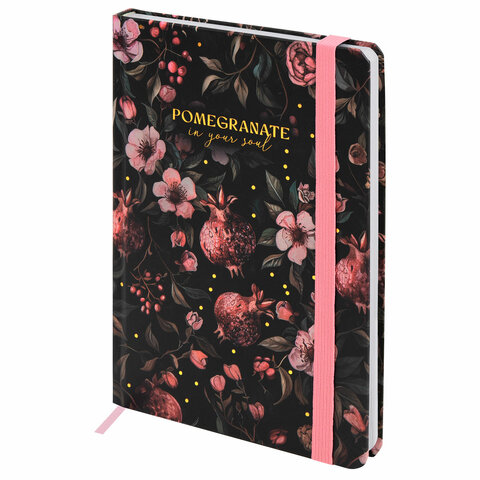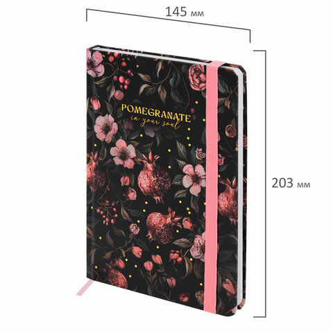 Ежедневник недатированный с резинкой А5 145х203 мм, BRAUBERG, твердый, фольга, 128 л., "Pomegranate", 116293