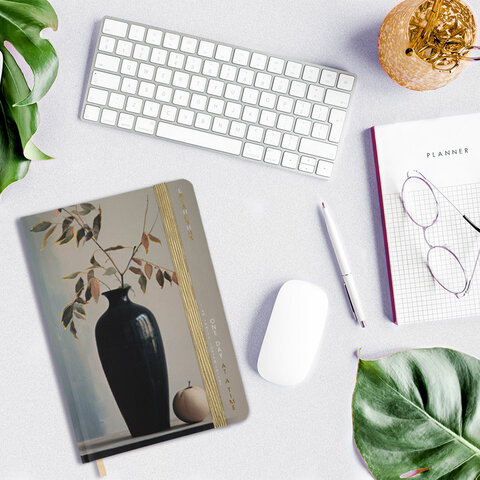 Ежедневник недатированный с резинкой А5 145х203 мм, BRAUBERG, твердый, фольга, 128 л., "Vase", 116295