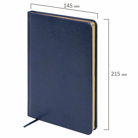 Еженедельник недатированный А5, 145х215 мм, BRAUBERG "Iguana", под кожу, 64 л., синий, 114476