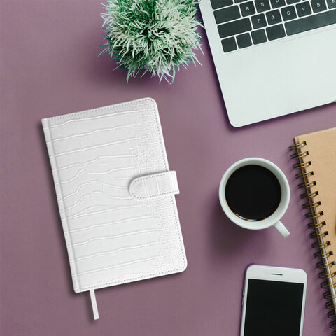 Еженедельник недатированный А5 145х215 мм, BRAUBERG "Party", под кожу, 64 л., белый, 114473