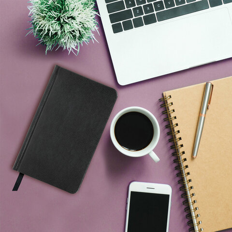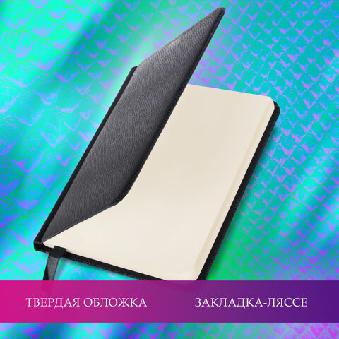 Еженедельник недатированный МАЛЫЙ ФОРМАТ 95х155 мм, А6, BRAUBERG "Iguana", под кожу, 64 л., черный, 114480
