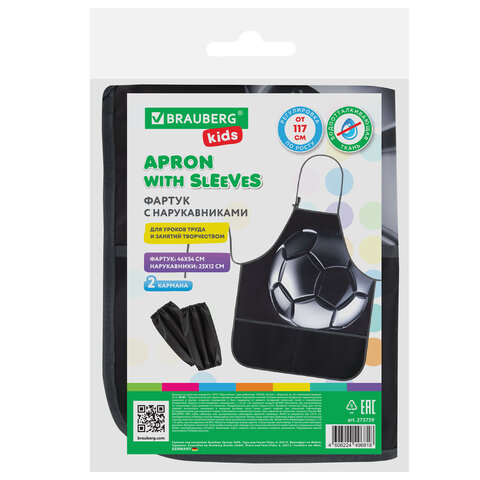 Фартук с нарукавниками для уроков труда BRAUBERG KIDS, 2 кармана, регулировка по росту, 46x54 см, "Score ball", 273759