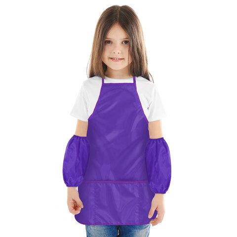 Фартук с нарукавниками для уроков труда ПИФАГОР, 3 кармана, стандартный размер, 44x55 см, фиолетовый, 273752