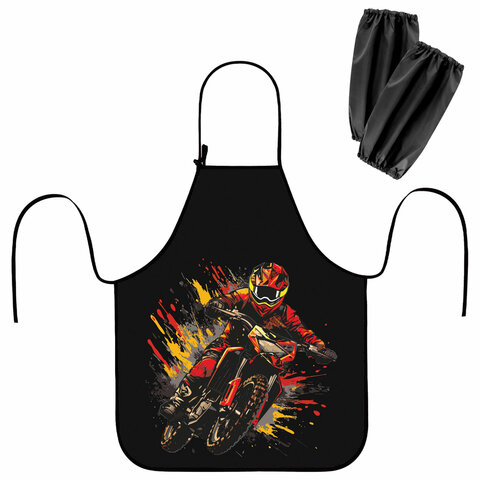Фартук с нарукавниками для уроков труда ЮНЛАНДИЯ, регулировка по росту, 46х54 см, "Fire moto", 273636
