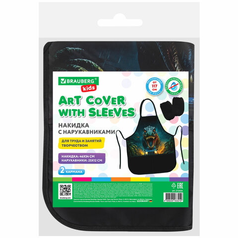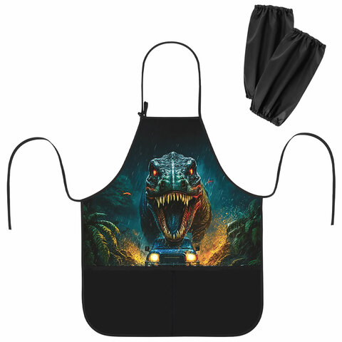 Накидка фартук с нарукавниками для труда BRAUBERG KIDS, 2 кармана, 46x54 см, "Dino chase", 272454