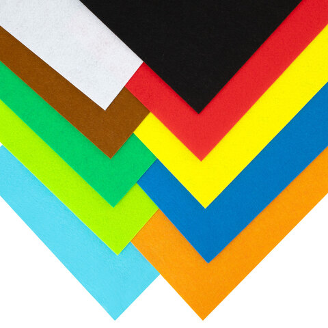 Фетр супер жесткий А4, 1 мм, 10 листов, 10 цветов, плотность 160 г/м2, ОСТРОВ СОКРОВИЩ, 665667