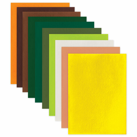 Цветной фетр МЯГКИЙ А4, 1 мм, 10 листов, 10 цветов, плотность 160 г/м2, Летний, ОСТРОВ СОКРОВИЩ, 660654