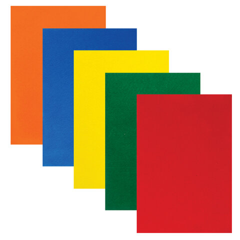 Цветной фетр МЯГКИЙ А4, 2 мм, 5 листов, 5 цветов, плотность 170 г/м2, самоклеящийся, ЮНЛАНДИЯ, 662051