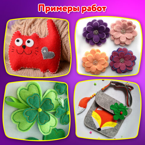 Цветной фетр ЮНЛАНДИЯ предназначен для создания ярких творческих поделок дома, в школе и в детском саду. Используется для создания аппликаций и вышивания, легко режется и приклеивается на ровную поверхность.