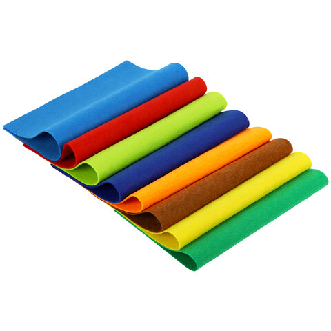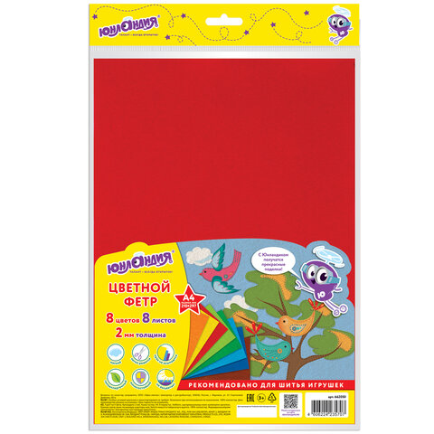 Цветной фетр МЯГКИЙ А4, 2 мм, 8 листов, 8 цветов, плотность 170 г/м2, ЮНЛАНДИЯ, 662050