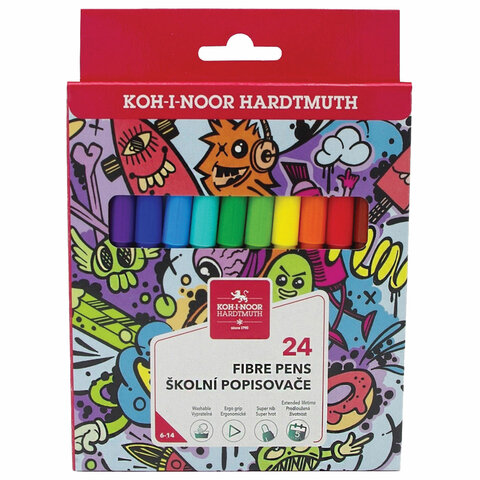 Фломастеры KOH-I-NOOR "TEENAGE" 1002, 24 цвета, смываемые, картонная упаковка, европодвес, 771002BD23KS