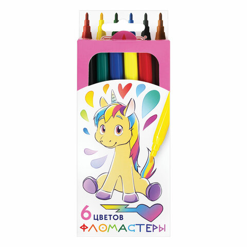 Фломастеры ПИФАГОР "ЕДИНОРОГ", 6 цветов, вентилируемый колпачок, 152447
