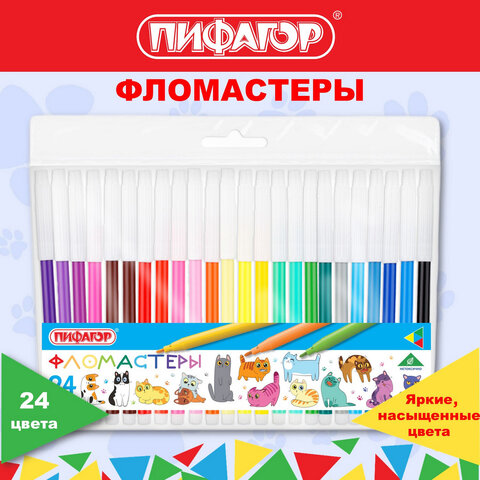Фломастеры ПИФАГОР "ВЕСЕЛЫЕ ПИТОМЦЫ", 24 цвета, невентилируемый колпачок, 152454