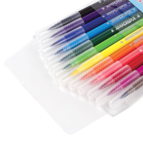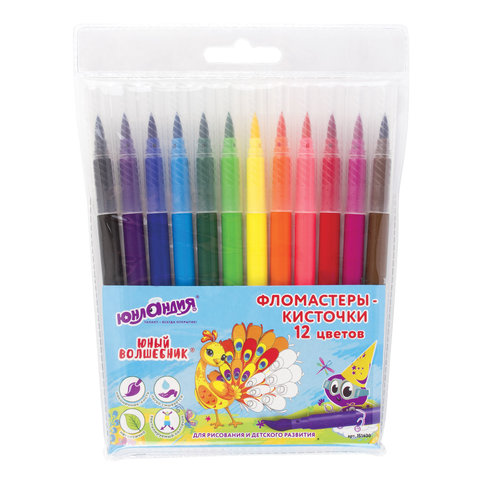 Фломастеры с кистью ЮНЛАНДИЯ "ЮНЫЙ ВОЛШЕБНИК", 12 цветов, вентилируемый колпачок, 151430