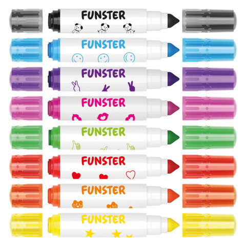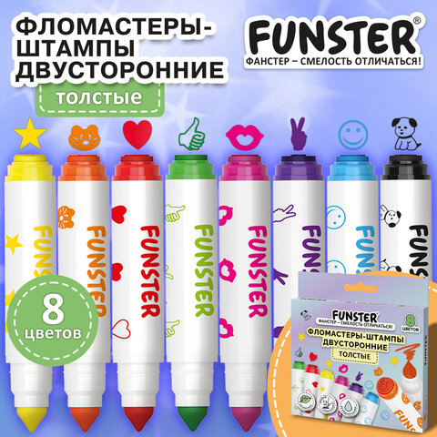 Фломастеры-штампы двусторонние FUNSTER (ФАНСТЕР) 8 цветов, ударопрочный наконечник, 152627