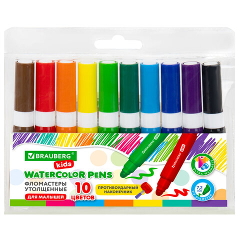 Фломастеры суперсмываемые толстые для малышей BRAUBERG KIDS, 10 цветов, ПВХ-упаковка, 152605