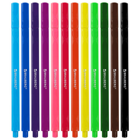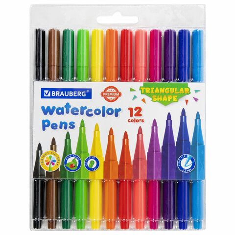 Фломастеры BRAUBERG PREMIUM - набор из 12 трехгранных фломастеров со смываемыми чернилами на водной основе в ПВХ-упаковке для рисования.