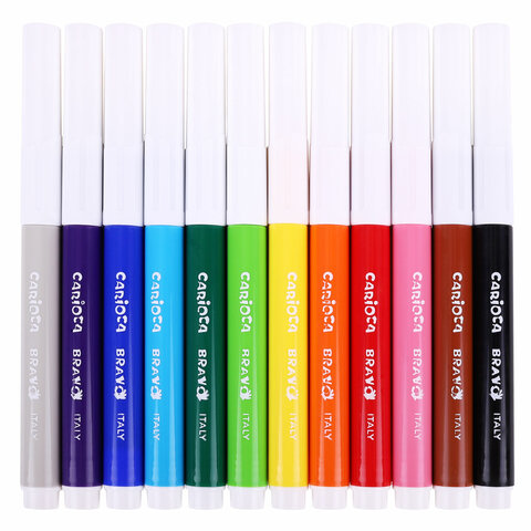 Фломастеры утолщенные CARIOCA (Италия) "Bravo", 12 цветов, суперсмываемые, 42755