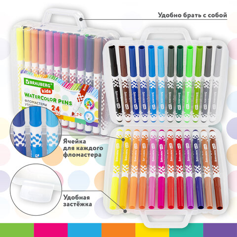 Фломастеры в портфельчике утолщенные 24 цвета, вентилируемый колпачок, BRAUBERG KIDS, 152186