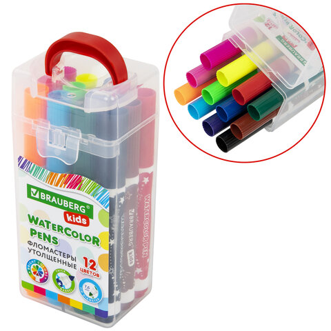 Фломастеры в суперкейсе утолщенные 12 цветов, вентилируемый колпачок, BRAUBERG KIDS, 152187
