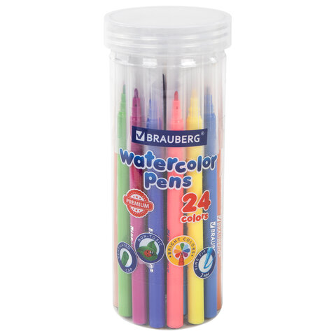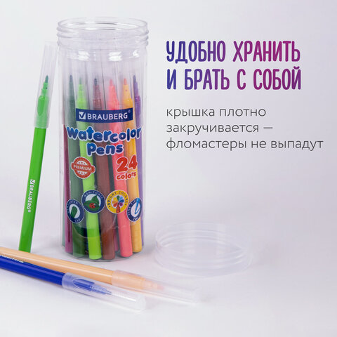Фломастеры в тубе классические 24 цвета, вентилируемый колпачок, BRAUBERG "PREMIUM", 152199