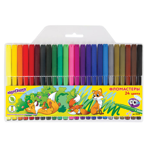 Фломастеры ЮНЛАНДИЯ 24 цвета, "УРОКИ РИСОВАНИЯ", вентилируемый колпачок, ПВХ, 151418